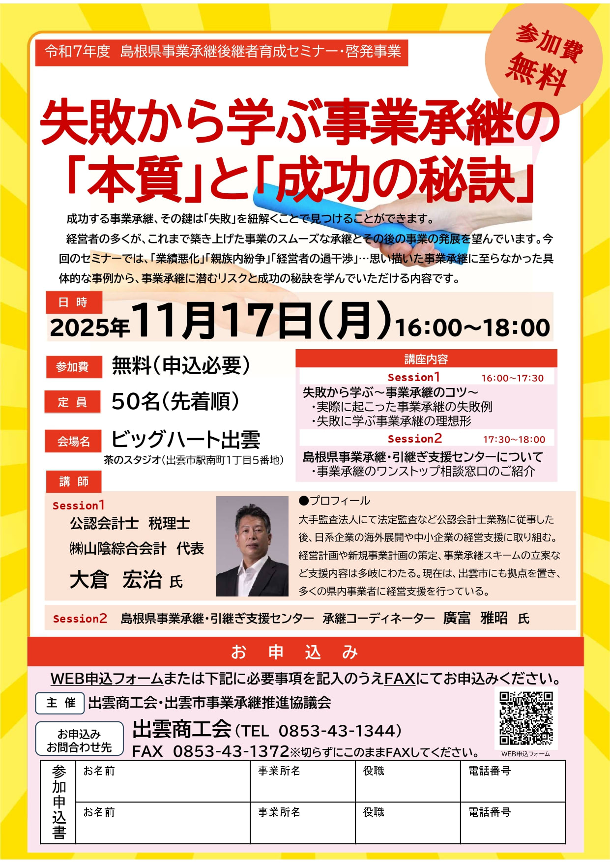 失敗から学ぶ事業承継の「本質」と「成功の秘訣」セミナーのご案内(11月17日)
