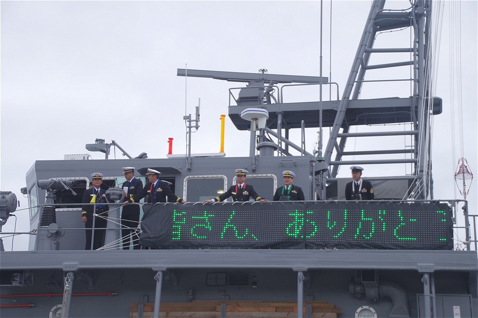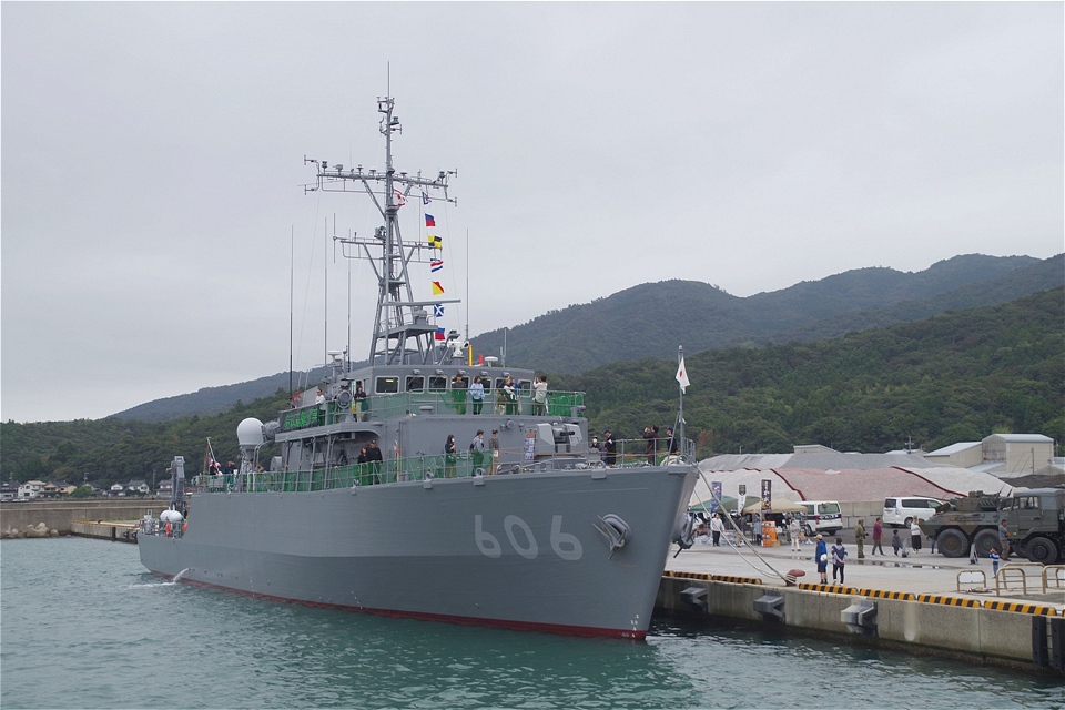 10月18日(土)に島根半島地区で実施された令和7年度島根県総合防災訓練への参加に併せ、出雲河下港に寄港した海上自衛隊掃海艇「はつしま」(舞鶴基地所属)が、翌19日(日)に艦艇広報を行いました。当日は陸上自衛隊出雲駐屯地の車輌展示もあり1,000名を超える来艦者がありました。