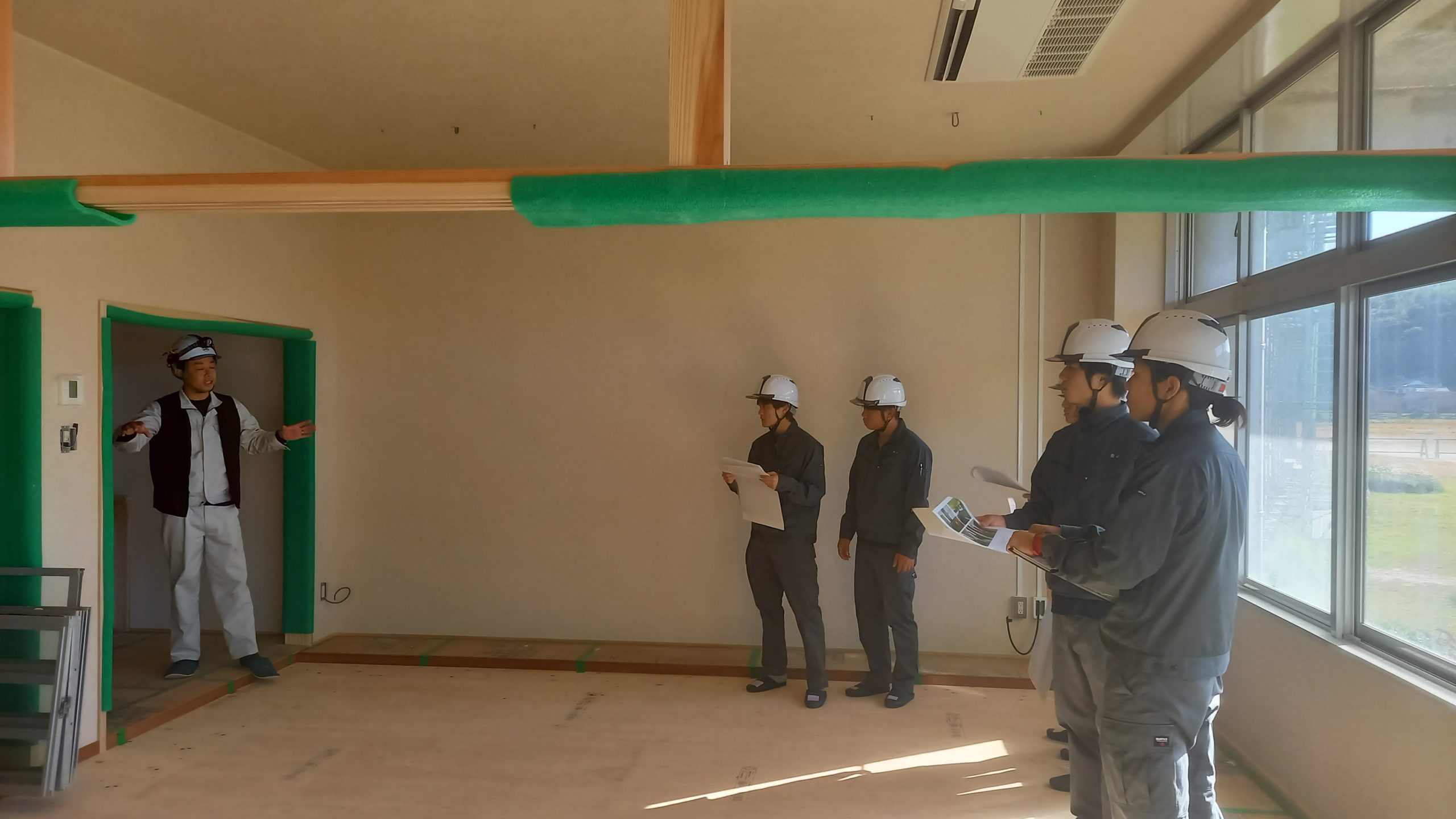当日は、北浜コミュニティセンター改修工事およびWOODWORKS㈱新築現場を見学した後、午後からは受入企業4社に分かれて実習を行いました。左官科の学生は2社に分かれて実技体験にも取り組み、現場ならではの緊張感と実践的な学びを体感する機会となりました。